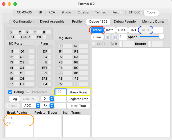 Other trace options that can be used are the 'Register Trap' for a register reaching a specific value or the 'Instr. Trap' for a specific instruction being executed.